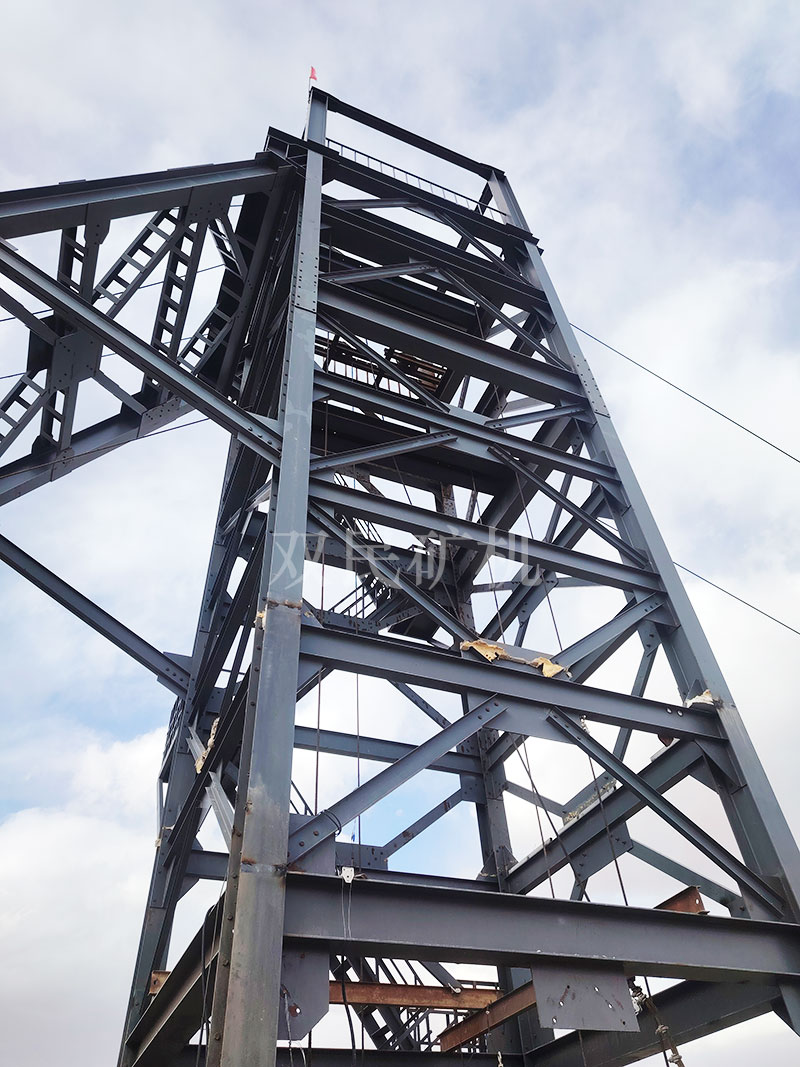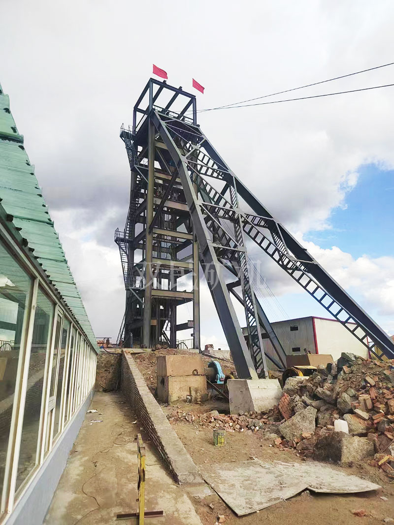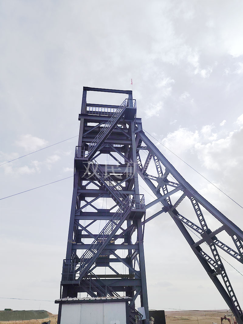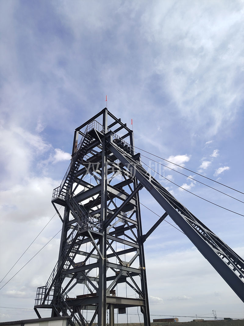 斜撐式永久井架主要特征和優(yōu)點: 單斜撐式井架是隨著落地式多繩地上計技術發(fā)展而產生的,具有造型獨特,結構簡單,受力合理,工程量少,經(jīng)濟實用,技術進步的特點。