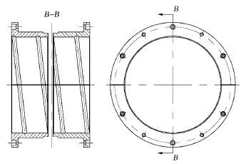 (3) 改進(jìn)軸瓦加工工藝,去掉原有兩瓣軸瓦之間的縫隙,避免天輪在正反方向運(yùn)轉(zhuǎn)時(shí)對(duì)固定螺栓的沖擊。