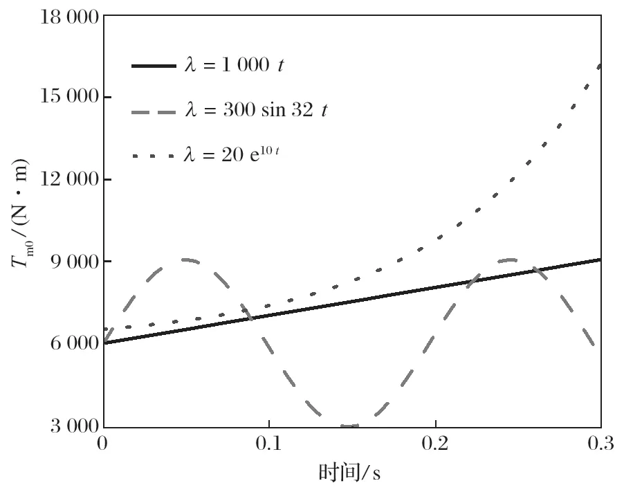 式中:Tm0 為輸出轉(zhuǎn)矩,N·m;Tm 為穩(wěn)定輸出轉(zhuǎn)矩,N·m;Km0 為剛度系數(shù);λ 為波動(dòng)系數(shù)。