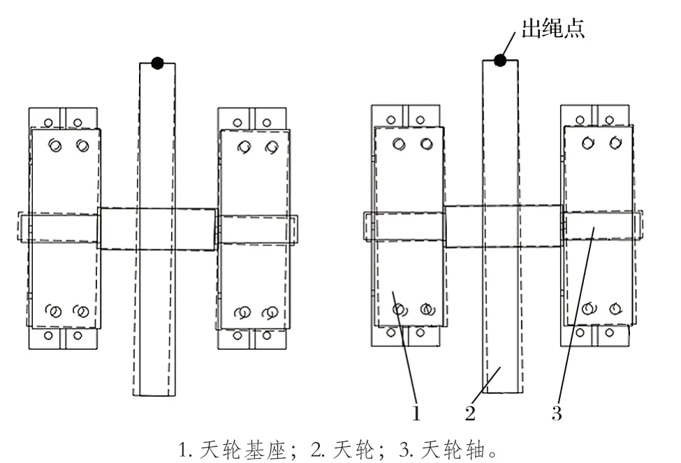 圖2 1 號天輪鋼絲繩內外偏角調整方案示意