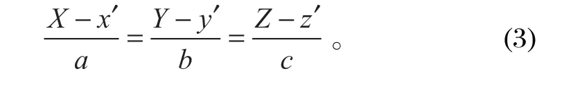 式中:X、Y 和 Z 為空間曲線(xiàn)移動(dòng)的 3 個(gè)面中 心點(diǎn)的坐標(biāo);x、y 和 z 為變化前的空間曲線(xiàn);x′、y′和 z′為變化后的空間曲線(xiàn)。
